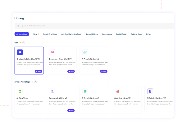 We have a wide variety of tools available for you to use. From blog shots (full blog posts) and tweets to sales email generators and marketing copy.